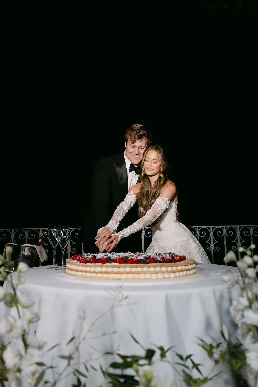 At the end of dinner came a beloved Italian tradition: the millefoglie wedding cake. Prepared live, the couple added their own playful twist with clouds of cotton candy, laughter, and a celebratory toast.